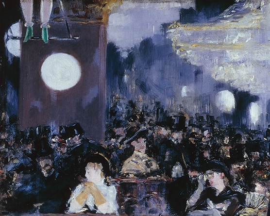 This painting is an intricate web of viewpoints.The barmaid gazes out – not at us – but instead stares into space. It is impossible to tell what she is thinking. In the mirror behind her we can see her reflection and a man is standing directly infront of her yet Manet chooses only to paint this man in the reflection not in reality. He should be standing in the front of the painting with his back to us. Manet places the reflection of the barmaid off-centre, it should be directly behind her in the mirror. Manet plays tricks with our perceptions. Its really a painting about seeing and looking. The scene that the barmaid is gazing out upon is one of hundreds of people who are reflected in the mirror behind her. Manet paints this crowd very loosely, capturing just fleeting impressions of the people as they disappear in and out of smoke and lights. “A Bar at the Folies Bergére is considered to be one of the masterpieces of the 19th Century.