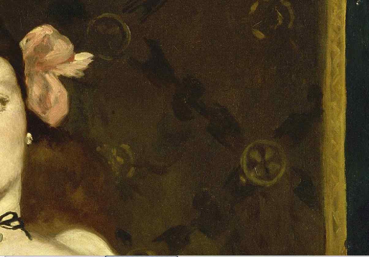 Manet had based Olympia on a painting by the Renaissance artist Titian; “The Venus of Urbino”. Whereas the nude figure in Titians work was accepted as a beautiful godess, Olympia in contrast, caused consternation amongst the Paris audiences and was rejected as shocking and brazen.