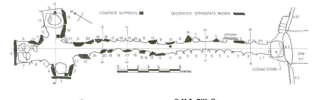 The passage is long and narrow being 19 meters in length. The passage walls are made up of large stones placed upright – these are called Orthostats. There are 21 orthosats lining the right of the passage and 22 on the left.